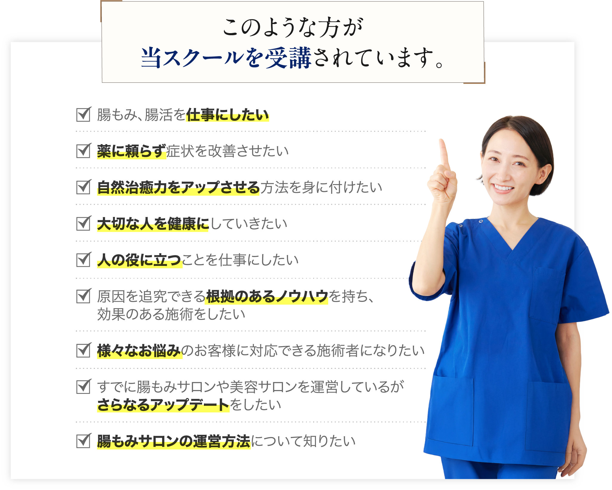 当スクールでは、腸もみを仕事にしたい方はもちろん、