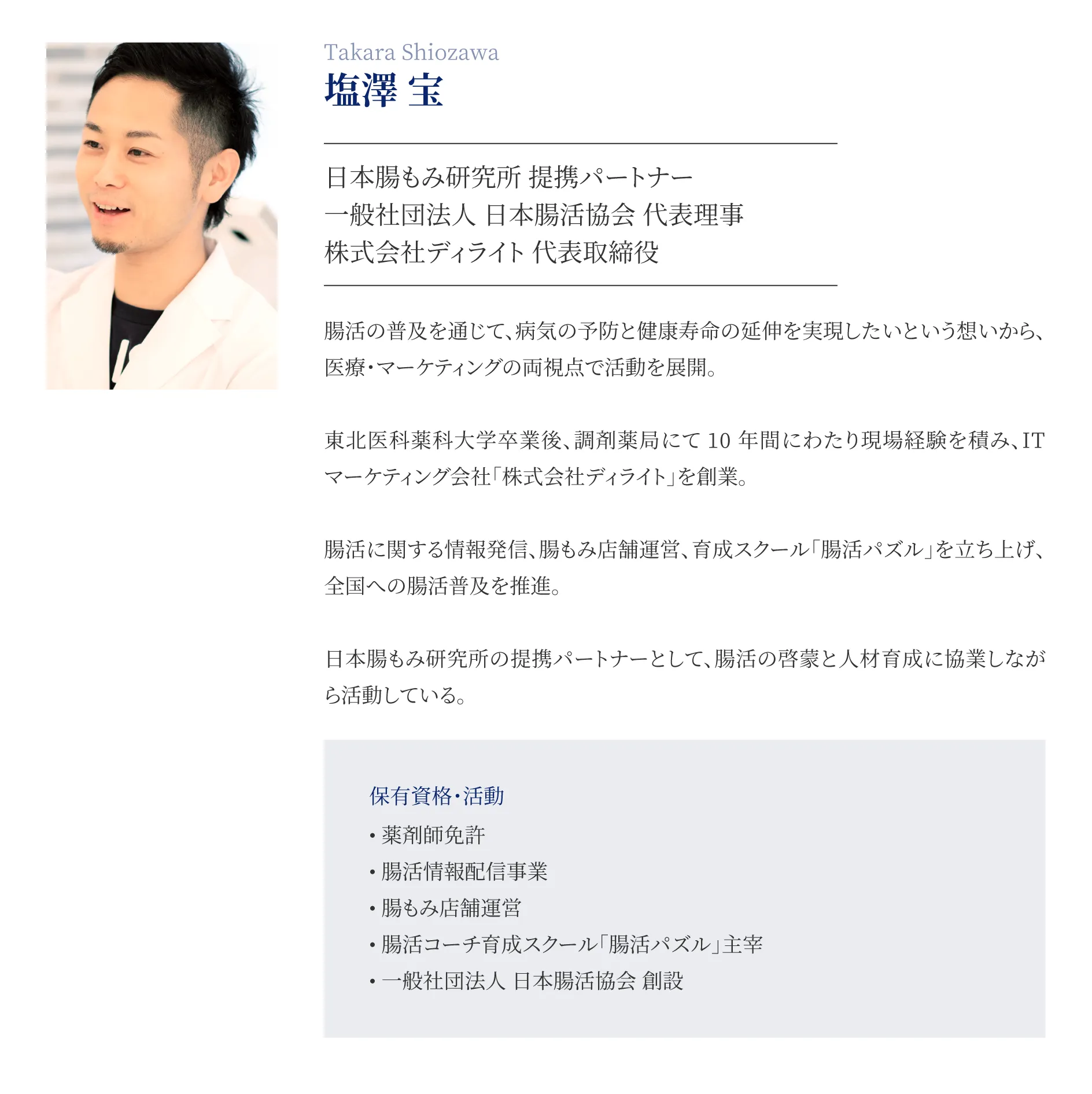 看護師、薬剤師、WHO 基準(国際基準)カイロプラクター、オステオパスが提携し、腸もみの知識、技術、サポート体制があります。